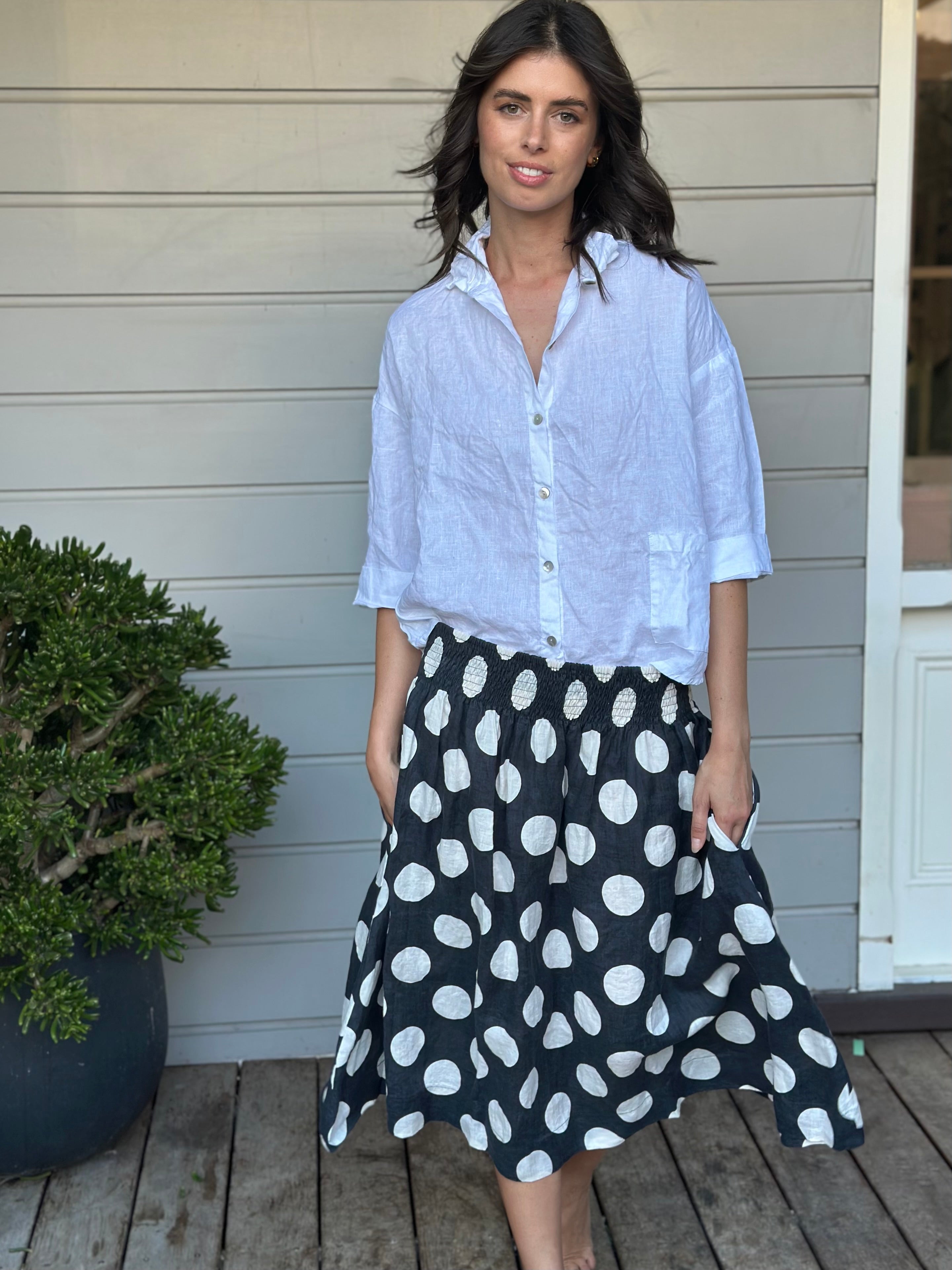 with a comfortable wide elastiscised waist that can sit on the waist or hips