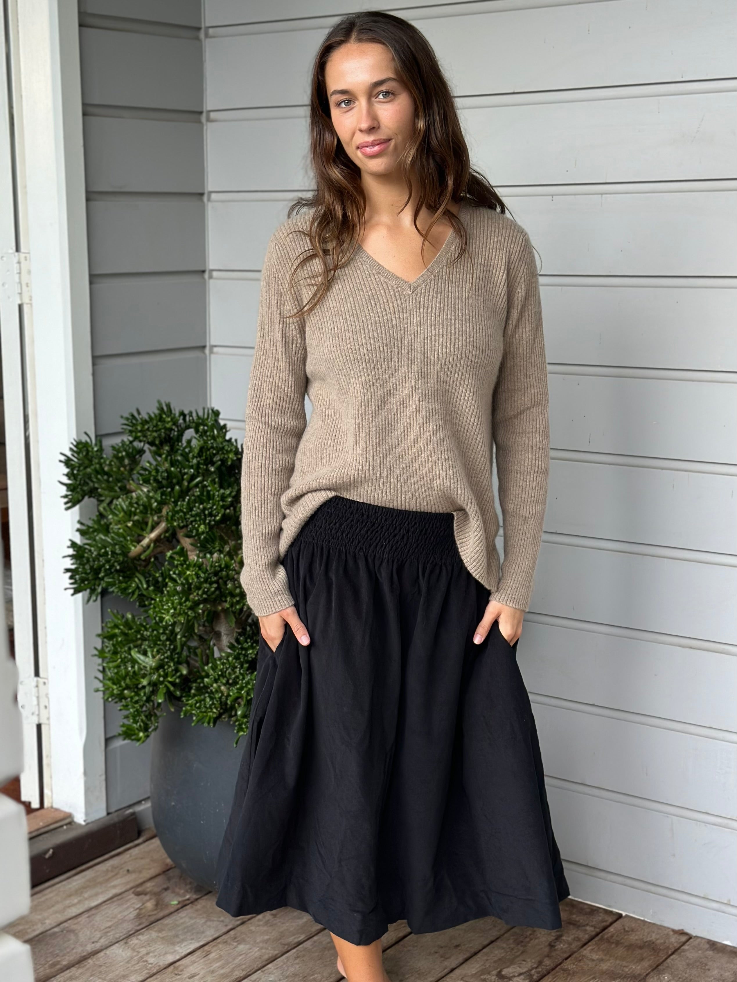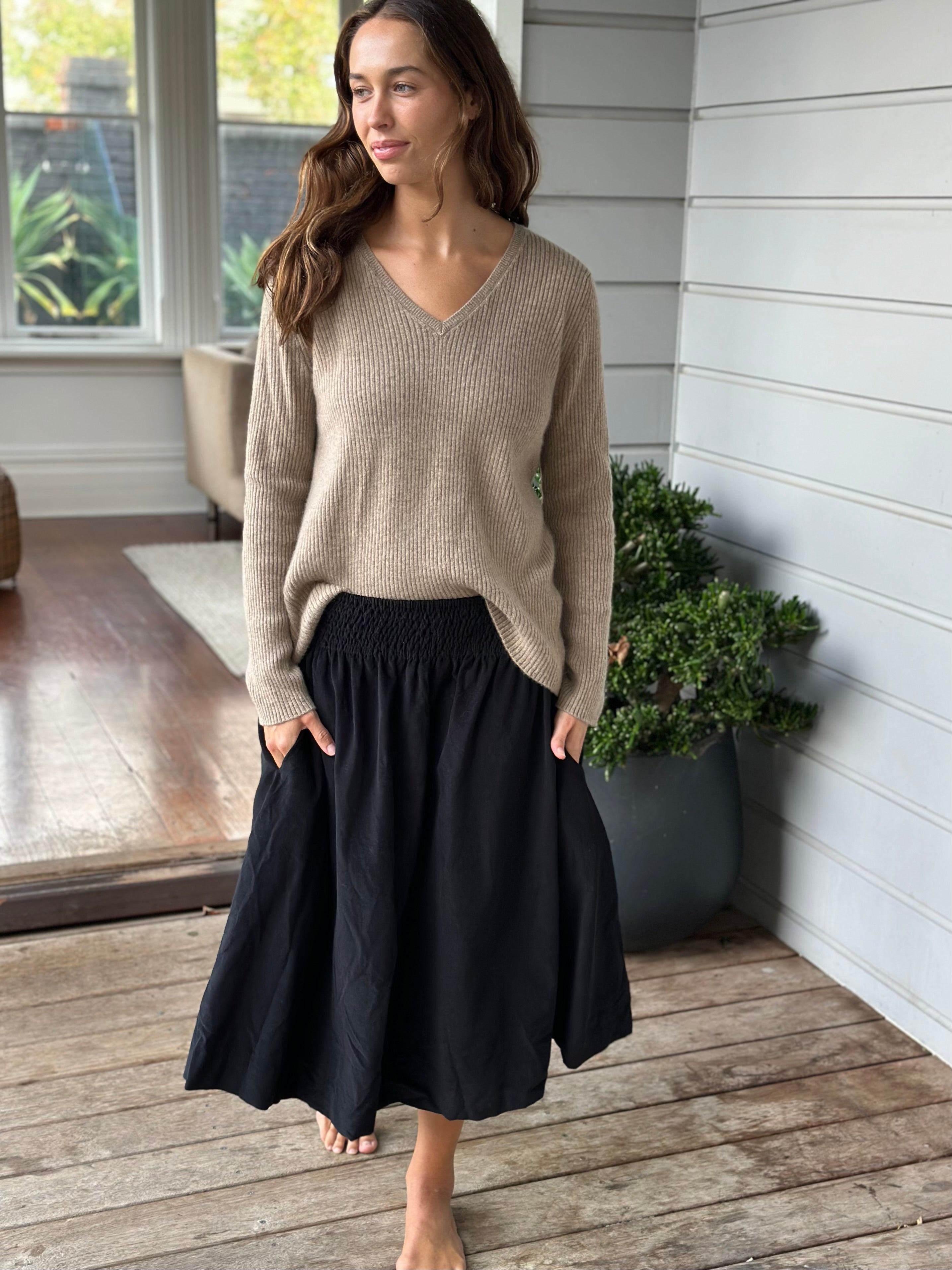with a comfortable wide elasticised waist that can sit on the waist or hips